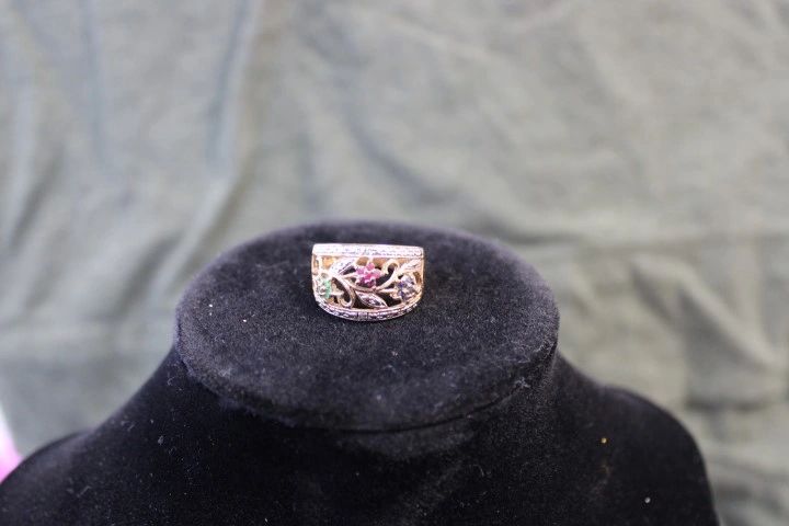 7 GOLD PLATED OVER 925 SILVER RING RED GREEN AND BLUE STONES SIZE 7.5 6.0 GR